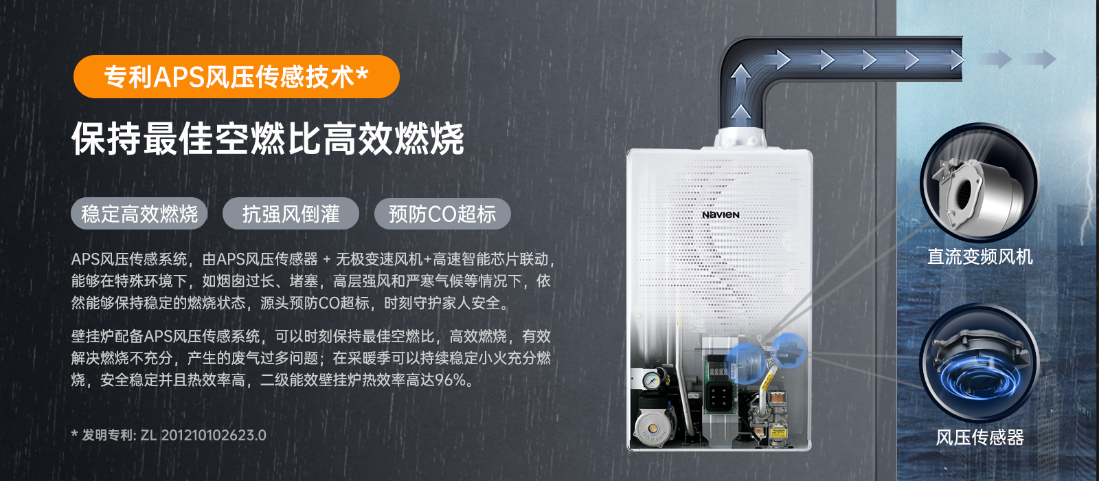 專利APS風壓傳感系統(tǒng)(專利號:ZL 201210102623.0) 更加充實的舒適的供暖和豐富的生活熱水